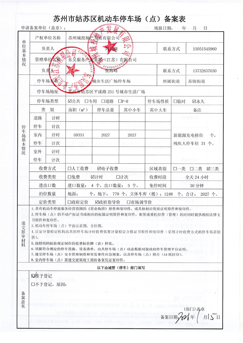 苏州市姑苏区机动车停车场(点)备案表(13)