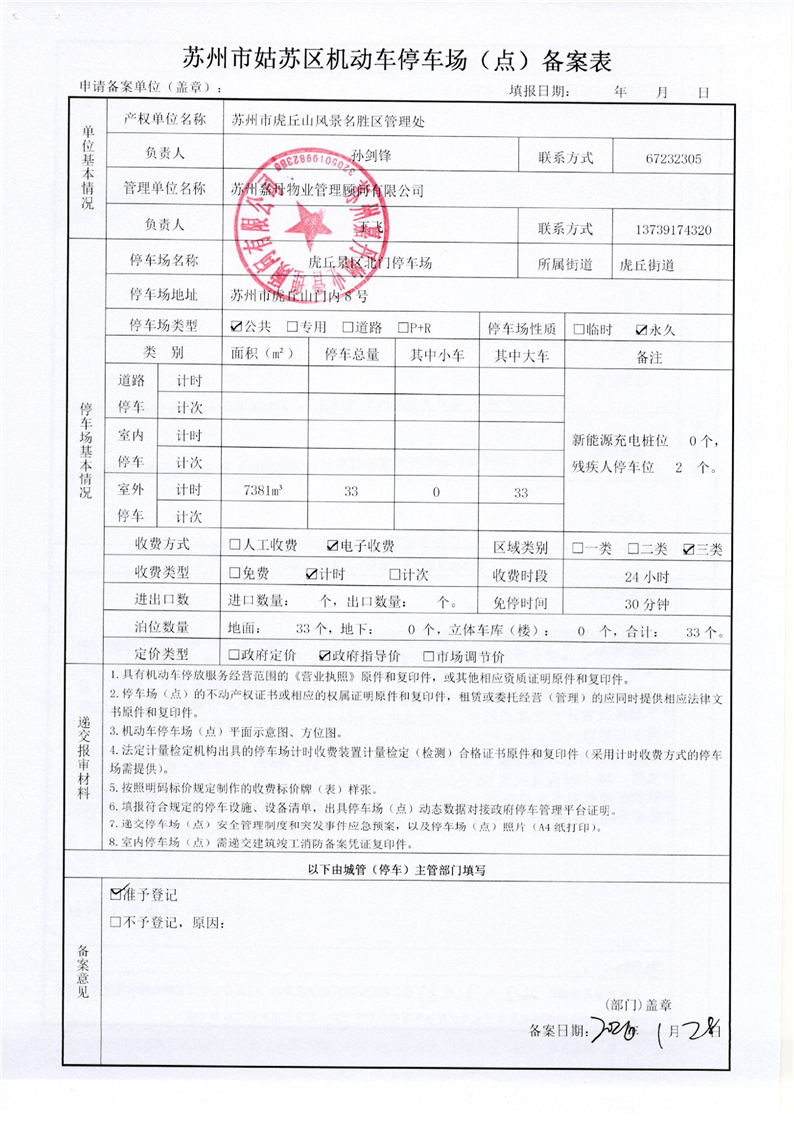 苏州市姑苏区机动车停车场(点)备案表(17)