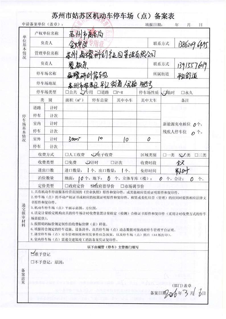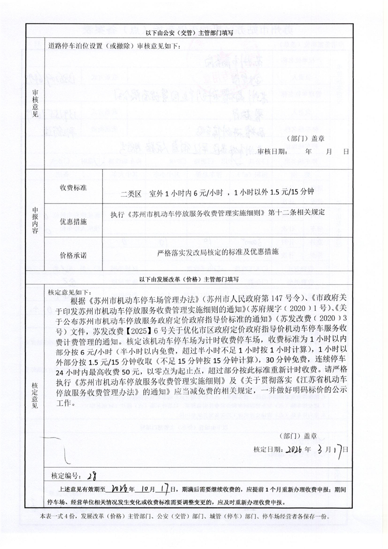 苏州市姑苏区机动车停车场(点)备案表(28)