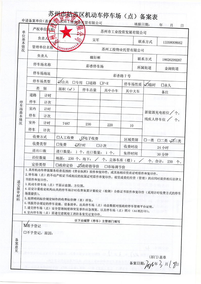 苏州市姑苏区机动车停车场(点)备案表(30)