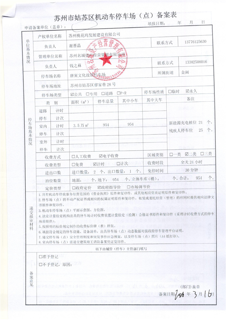 苏州市姑苏区机动车停车场(点)备案表(26)